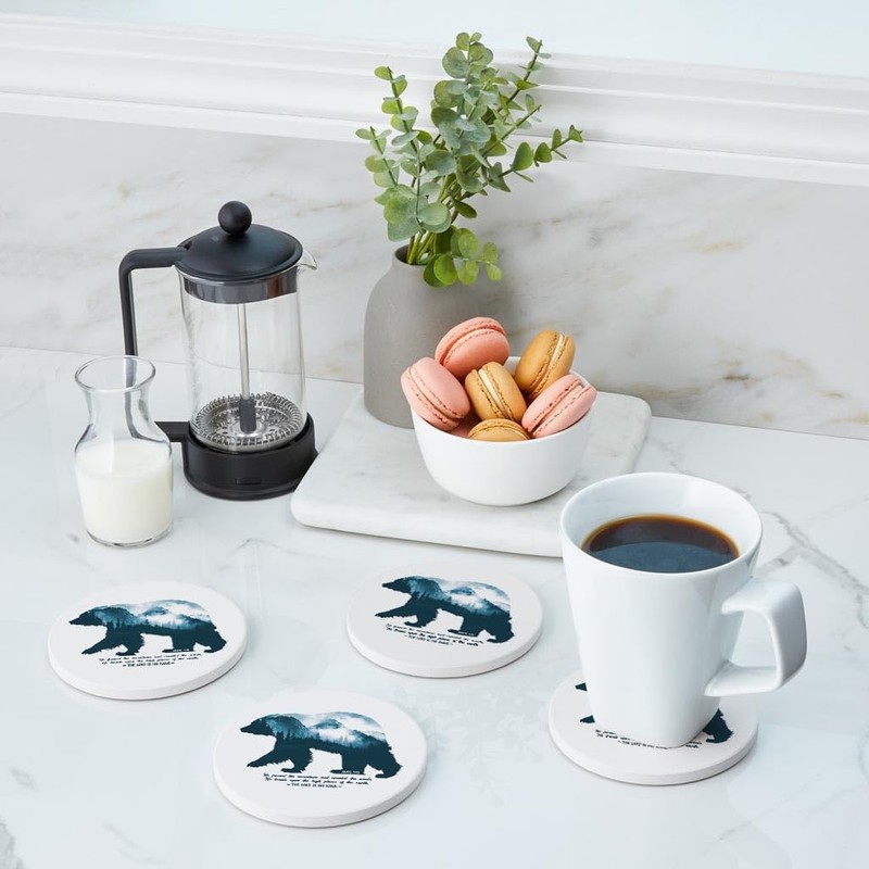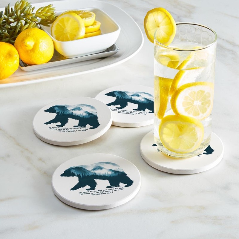 Kerusso Decorative Round Coaster for Drinks 4 Inch Absorbent Ceramic with Non-Scratch Cork Backing Bear Set of 4