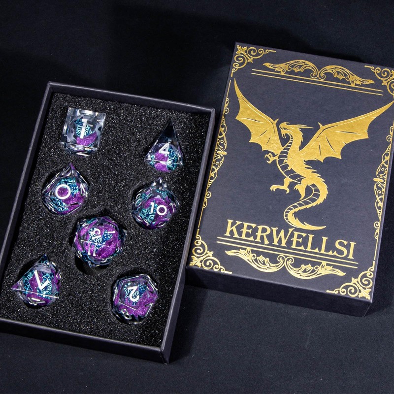 - KERWELLSI DND Dice Set, 7pcs Sharp Edge Resin Dice Set with Gift Box