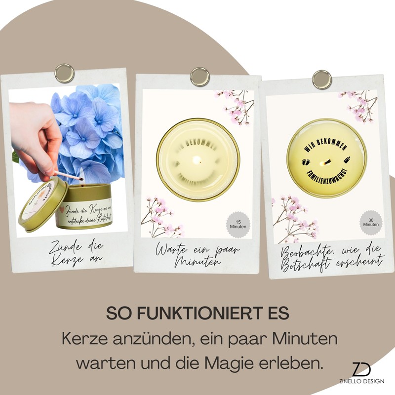 - 🕯️ MAGISCHE SCHWANGERSCHAFTSANKÜNDIGUNG MIT EMOTIONSGARANTIE Verkünden Sie Ihre Schwangerschaft auf unvergessliche Weise mit diesen 4 Kerzen mit geheimer Nachricht. Wenn das Wachs schmilzt, erscheinen die Worte "WIR BEKOMMEN FAMILIENZUWACHS!" wie von Zauberhand und schaffen einen Moment purer Emotion mit Ihren Liebsten.