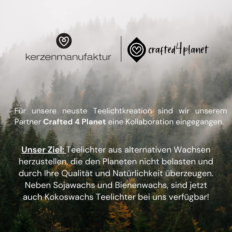 - CRAFTED 4 PLANET EDITION – Our new coconut wax tea lights have been developed together with Crafted 4 Planet