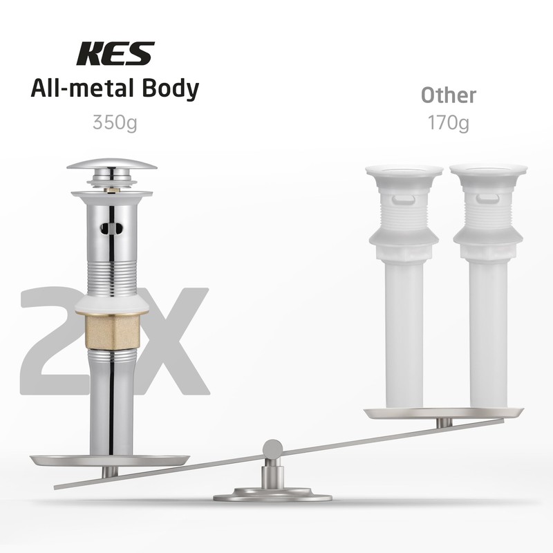 - [All-metal] KES chrome pop up sink drain is crafted from premium SUS304 stainless steel and brass, ensuring exceptional durability.