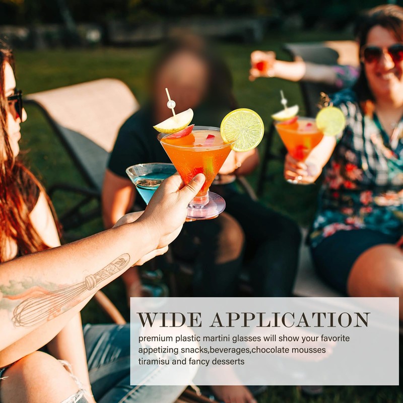 - 🍸 Suitable for Many Occasions: These plastic cocktail glasses can provide practical functions, which can be widely applied to weddings, pool parties, holidays, anniversaries, birthday parties, banquets, and other occasions, and can make your parties more memorable and impressive.