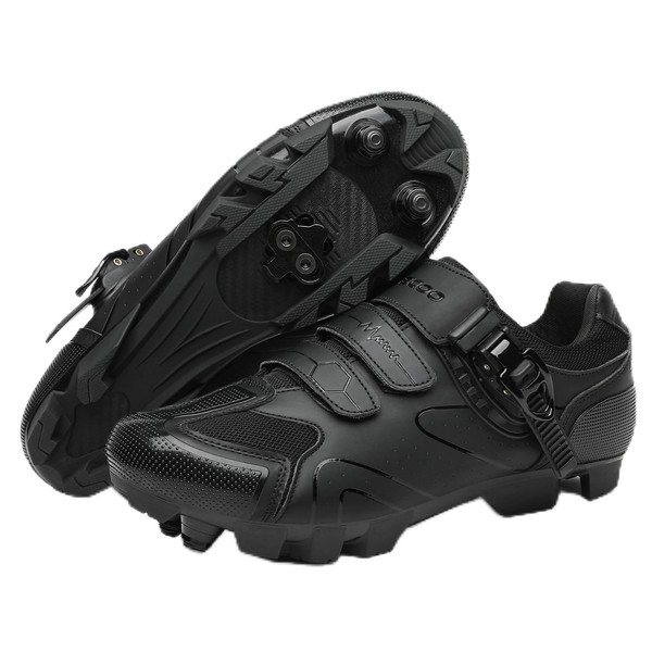 KESCOO Mountain Bike Shoes for Men with 2-Bolts SPD Cleats Indoor Outdoor Cycling Shoes with Quick Ratchet Buckle, Black 47