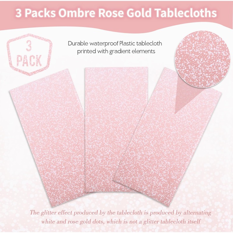 - Abundant quantity: You will receive 3 pieces of Ombre Rose Gold Table Covers , the size is 54x108 inch, the quantity can meet your needs for everyday picnic parties, rose gold holiday party decorations, rose gold birthday party decorations, rose gold wallpaper backgrounds