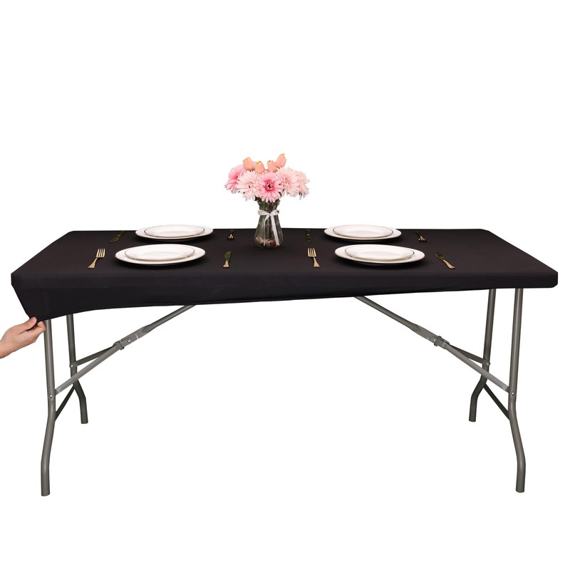 Kesfey Black Picnic Tablecloth, Waterproof Elastic Fitted Tablecloths for 4 Foot Tables, Washable Polyester Table Cover for Camping, Indoor and Outdoor (24x48in)