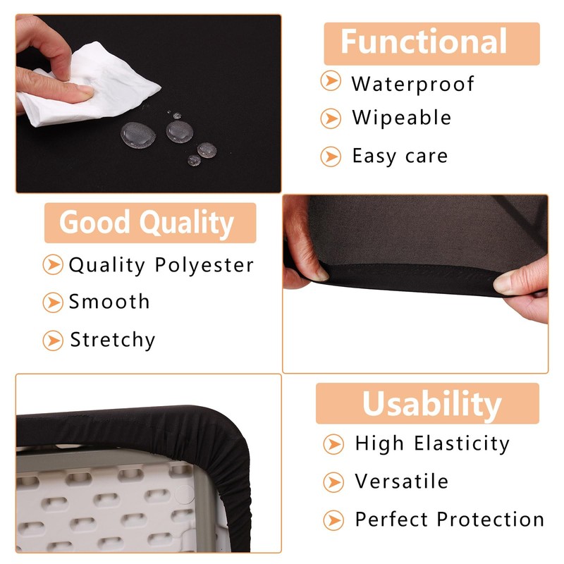 - ELASTIC EDGES AND WIND PROOF:The tablecloth has elasticated edges, the tablecloth stretches to hold it firmly in place and keep it flat. You won't have to worry about the tablecloth blowing away when you use it in camping and windy weather.