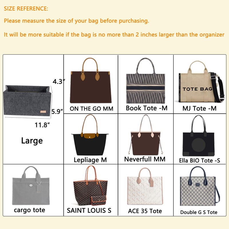 - 【Widely Applicable】ONTHEGO MM Bag Insert Organizer is carefully designed and made according to the style and shape of the bag. It is sturdy and upright, so that your beloved bag will not be deformed and maintain a perfect shape.It is also suitable for bags of other brands,such as neverfull mm,d.ior tote,B.V Cabat tote,m.arc jacobs etc.