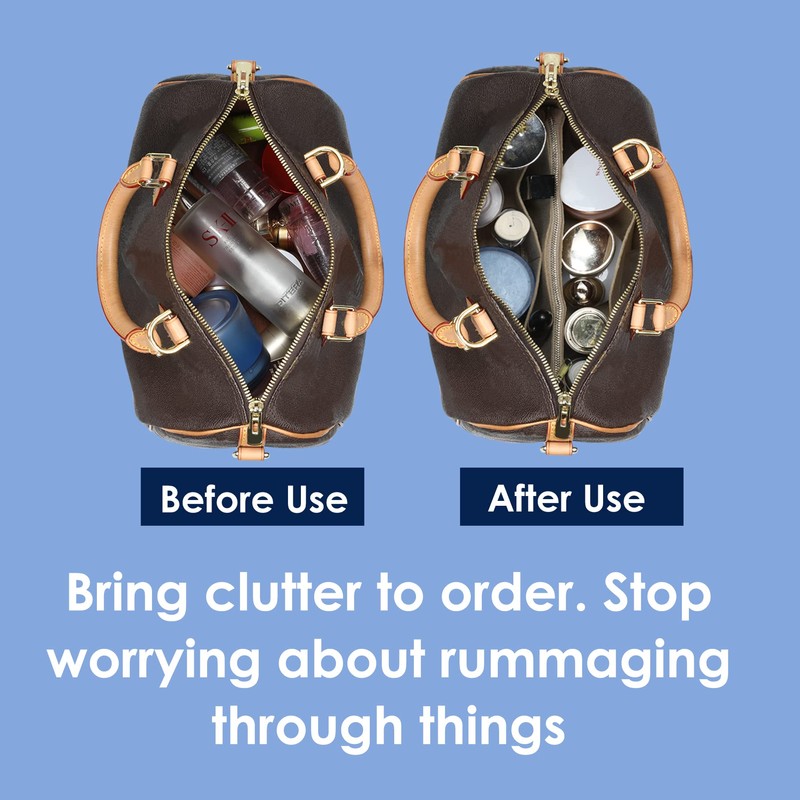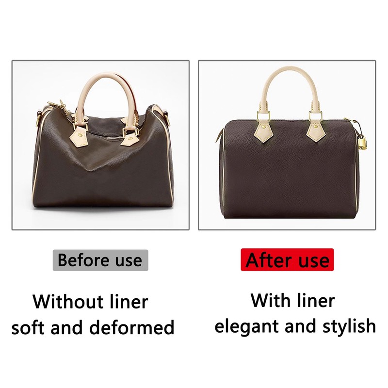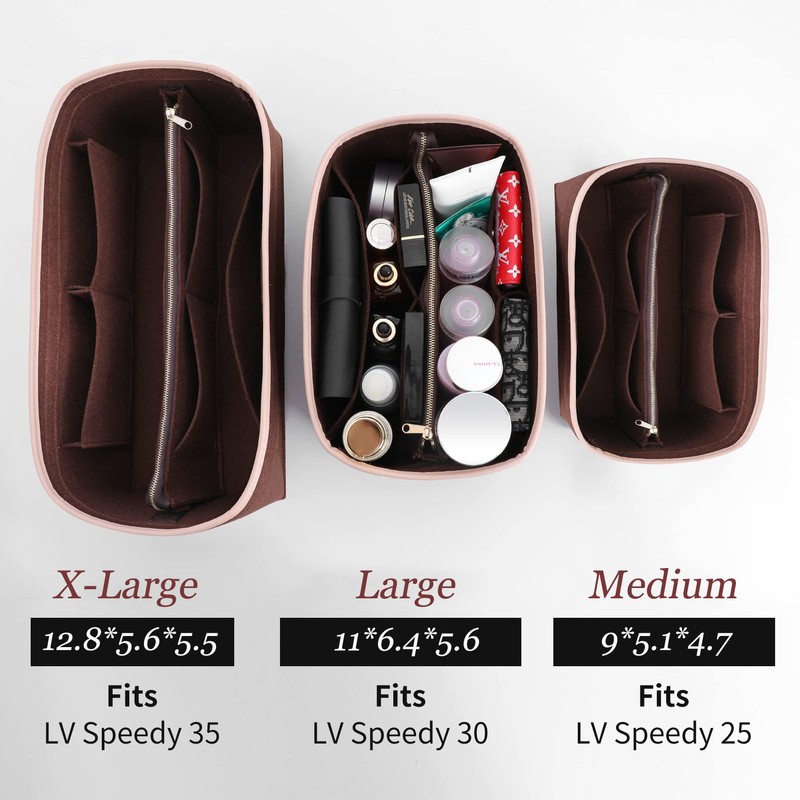 - 【Bag Organizer Size】The bag organizer is available in 3 sizes.SMALL:7 x 3.2 x 4 inches(W*D*H).Small handbag organizer Fit Speedy20,Neverfull BB,Onthego PM,Book Tote S.MEDIUM: 9 x 5.1 x 4.7inches(W*D*H).Medium purse divider Fit Speedy25,Le Pliage S,Ophidia S,Carryall PM.LARGER: 11 x 6.4 x5.6inches(W*D*H).Large bag organizer Fit Speedy30,Le Pliage M,Ophidia M etc.