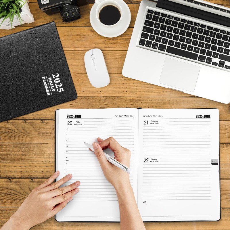Kesote A4 2025 Planner Daily Weekly Monthly Yearly Planner Agenda 2025 Schedule Organizer for Business School Journal Notebook, Black