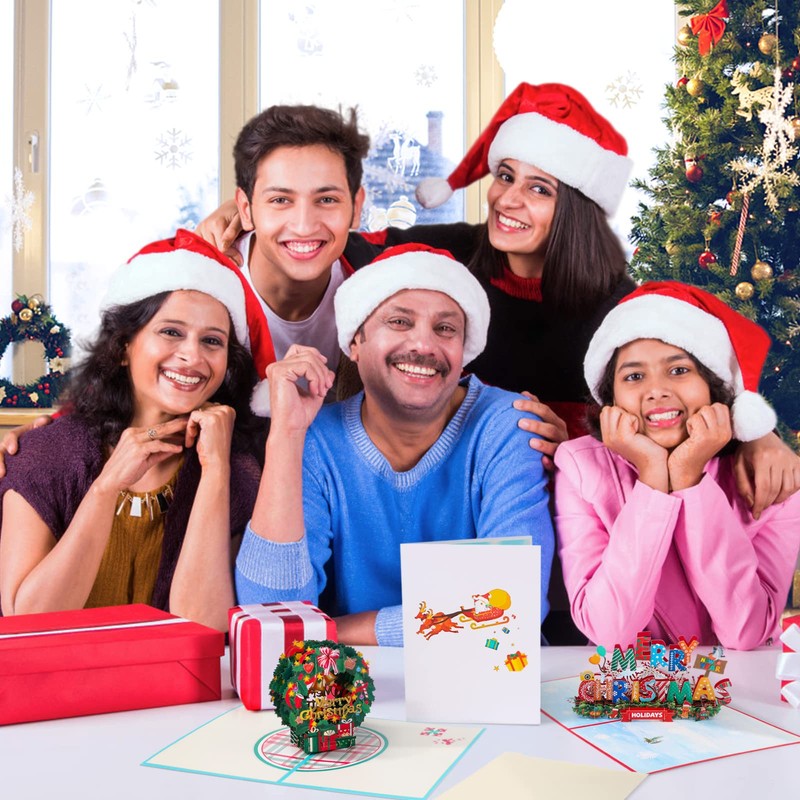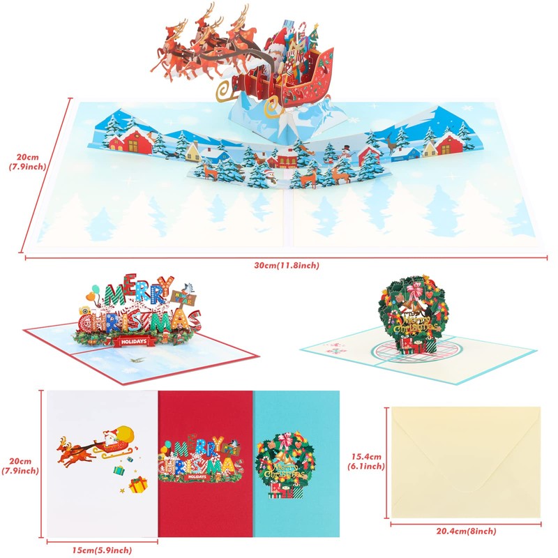 - Set of 3 pop-up Christmas cards with envelopes, suitable for children and adults