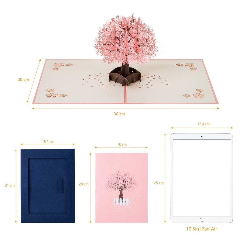 - Pop up card with 3D cherry blossom tree pops out when opened