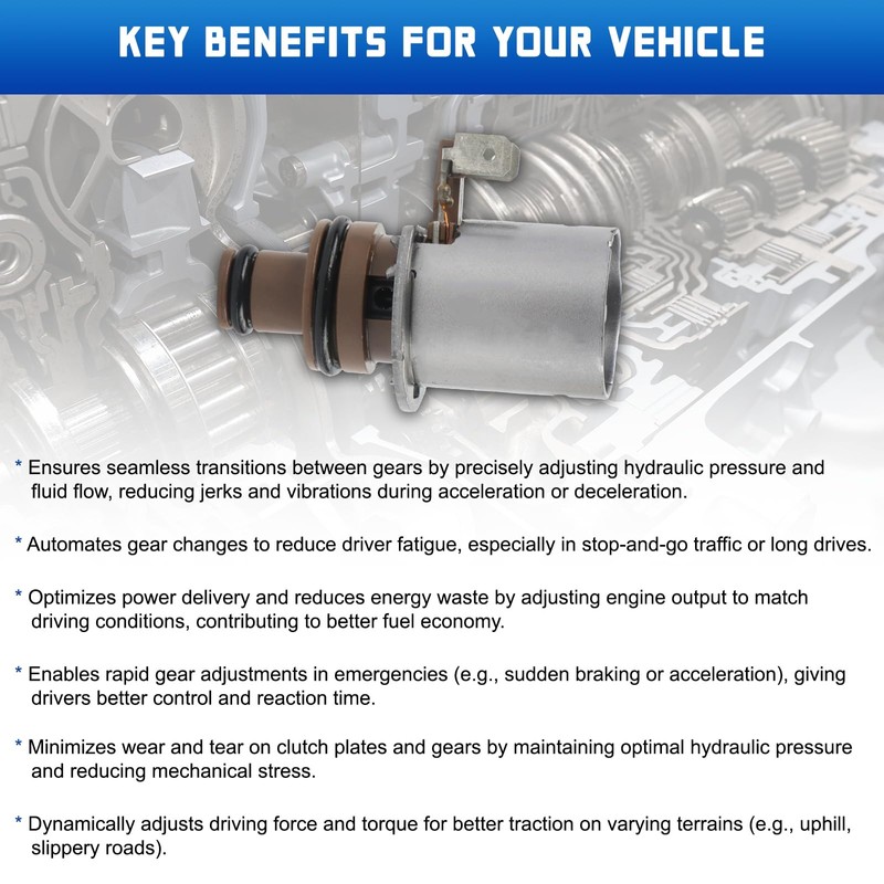 - Perfect Replacement: The CVT transmission TCC torque converter clutch solenoid is easy to install, no need for complicated tools, easy to use, direct replacement for your old or broken one. A perfect replacement for your original part.