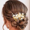 Kesvb Flower Bride Wedding Hair Comb Rose Gold Leaf Bridal Headpiece Pearl Hair Accessories for Women