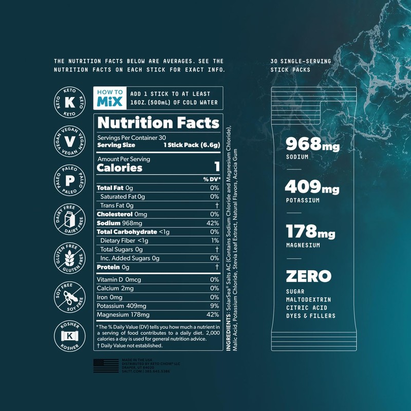 Keto Chow SALTT Electrolytes Powder Flavored Drink Mix - Ultra Variety - 90 Hydration Packets - Magnesium, Potassium, Sodium, Trace Minerals - Zero Sugar & Gluten Free - 3 Packs of 30