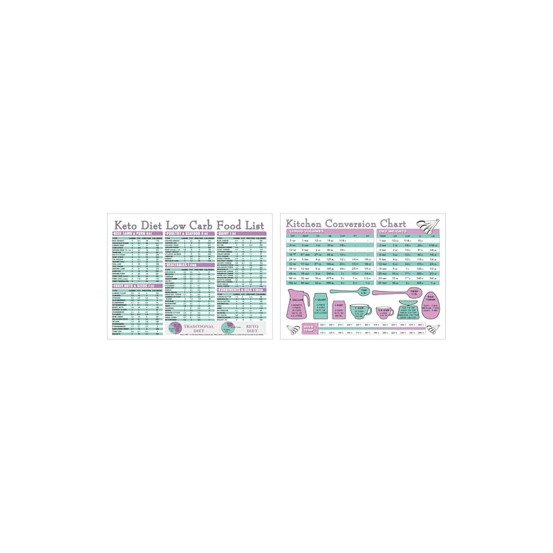 KETO DIET LOW CARB FOOD LIST CHEAT SHEET QUICK GUIDE - Details foods from Beef, Lamb, Pork, Poultry, Seafood, Fruit, Nuts, Seeds, Vegetables, Dairy and Condiments/Oils. Our double sided laminated chart details all the conversion measurements for that cook or baker! One Large Print chart tells it all! Not a magnet so your fridge doesn’t look like a clutter mess. KITCHEN CONVERSION CHART covers Teaspoons, Tablespoons, Ounces, Cups, Pints, Quarts, Gallons, Grams and Pounds in liquid volumes and dry weights. Oven temperature conversions between Celsius and Fahrenheit. ONE chart has a wealth of information and makes the perfect gift! EXTRA LARGE LAMINATED 8.5 x 11-inch double side chart – Water resistant and easy to read & clean. Not a magnet - easy to store so your fridge looks nice!