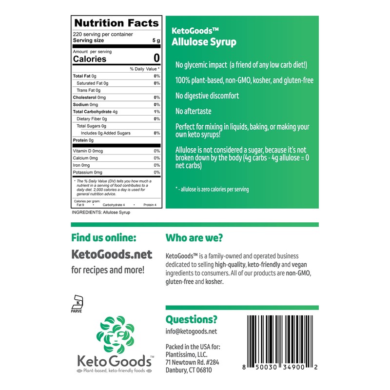 KetoGoods Allulose Simple Syrup: No carbs/calories, Keto friendly, No glycemic impact (2.5lb)