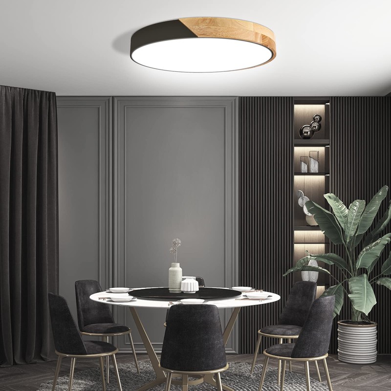 - 【High Quality Material】30W ceiling lamp sealed with acrylic lampshade, light body is made of iron and exterior decoration with oak. Frosted acrylic lampshade make the light even with good light transmission performance.