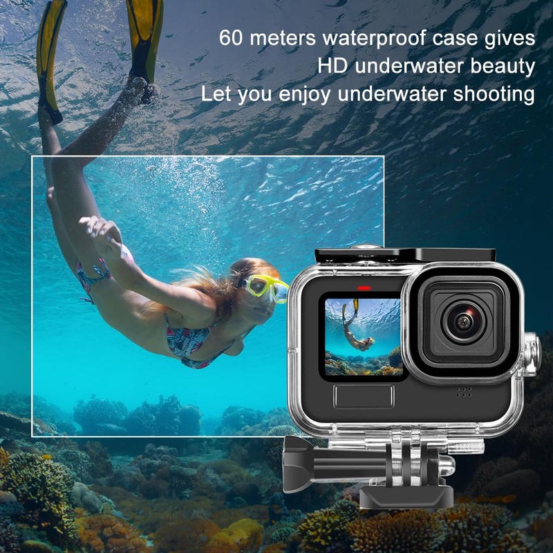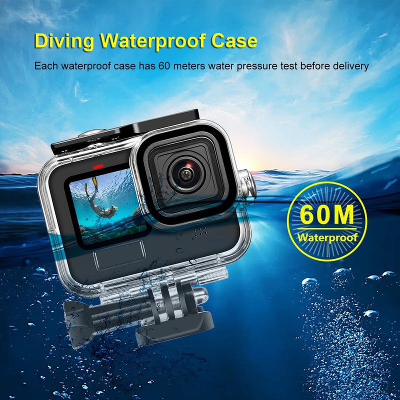 - 60M/196FT underwater clear shooting:with tempered glass lens to protect your camera lens, HD lens with high light transmission, even underwater 60M/196FT will not damage the shooting effect, clear and realistic.this waterproof case make of ABS meterail,can protective for GoPro Hero12 Black/Hero11 Black/Hero10 Black/Hero9 Black camera screen.