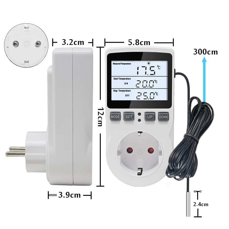 • ④【With 3M Temperature Sensor】The thermostat socket comes with a 3m long NTC10K/B3950 temperature sensor, and the temperature controller can display ℃ or ℉, the calibration function can improve accuracy. The reset function makes it easier to switch to control other household appliances.