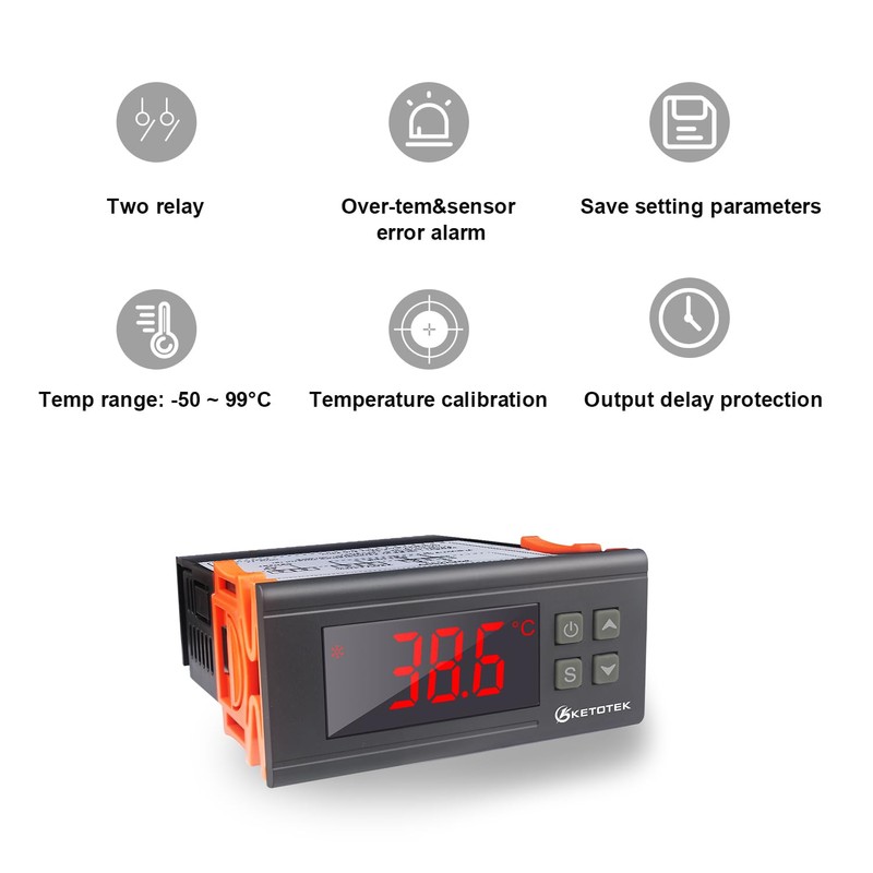 - Multifunctional: This incubator thermostat supports temperature calibration, compressor delay protection, alarm when the temperature exceeds the temperature limit or when a sensor error occurs, all parameter settings can be saved after restart.
