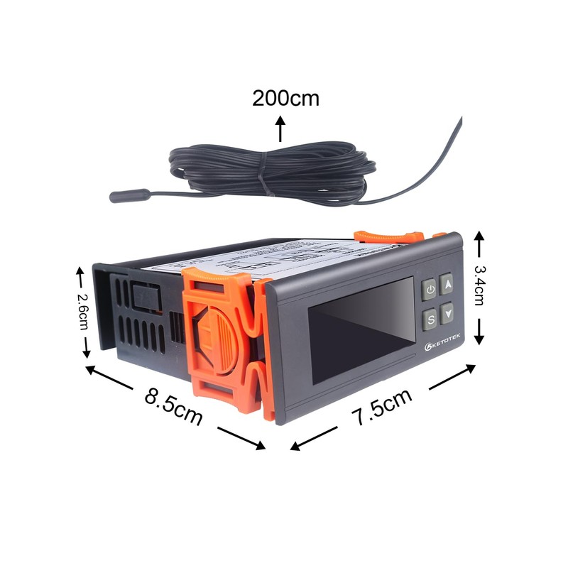KETOTEK Temperature Controller 230 V with Sensor KT1000, Digital Thermostat 220 V with 2 m Waterproof Sensor Probe, Double Relay Temperature Monitor for Heating Cooling Aquarium Incubator Terrarium