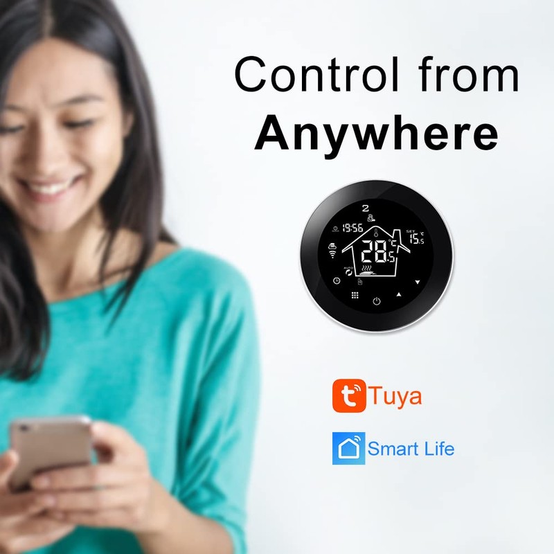 - 【Voice and APP Control】This underfloor heating thermostat supports voice control and APP control. It is compatible with Echo Alexa and Google Assistant. You can also download Smart Life APP or Tuya and connect WiFi to control your underfloor heating system remotely anytime and anywhere through your smartphone. 2.4GHz WiFi required (5.0GHz not applicable).