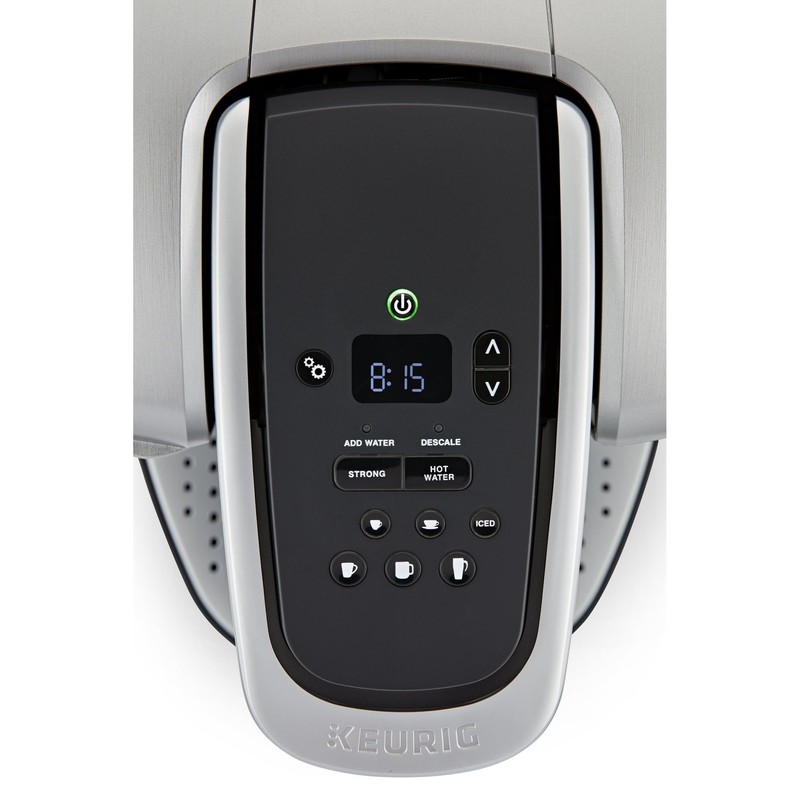 The Keurig K-Elite brewer blends a premium finish and programmable features to deliver both modern design and the ultimate in beverage customization. With a striking brushed finish and metal details, it’s a stylish addition to any kitchen. The Keurig K-Elite single serve coffee maker features Strong Brew for when you want to brew a bolder cup of coffee, and an Iced button to brew hot over ice for a refreshing, full-flavored iced coffee. It features five brew sizes, so you can brew your favorite coffee, tea, hot cocoa, or iced beverage at the touch of a button. Choose from hundreds of delicious varieties of K-Cup pods, or brew your own ground coffee using the Universal My K-Cup Reusable Coffee Filter (sold separately). The K-Elite brewer offers programmable features like auto on and temperature control, as well as providing hot water on demand for instant soups and oatmeal, and the large 75oz removable water reservoir lets you brew 8 cups between refills.