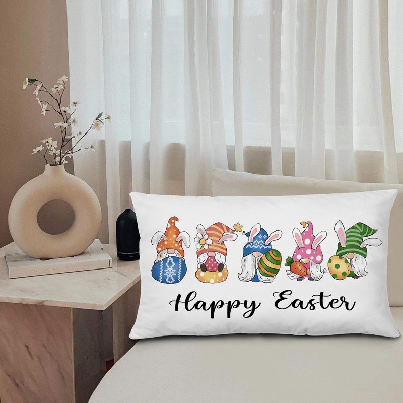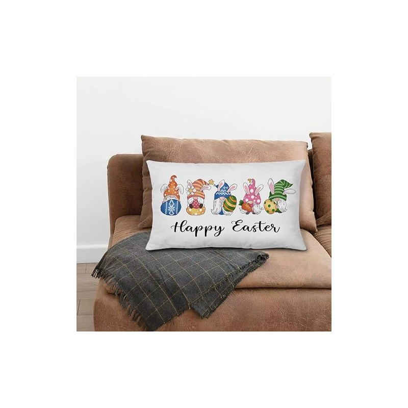 KEUSPI Bunny Gnome Easter Pillow Covers 12x20, Easter Home Decor, Happy Easter Egg Gnomes Decorations for The Home