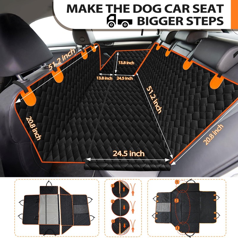 - 【Extended Dog Cover】Increased Back Seat Dog Activity-The Back Seat Extender for Dogs measures 52 inches wide and 24.5 inches deep, offering full coverage of the rear seat. It easily assembles to a depth of 38.5 inches,Our dog seat cover for back seat increases your dog's activity space by 50% ideal for SUVs and pickup trucks. This design prevents dogs from falling, increases activity space, and allows them to move and stretch comfortably, reducing anxiety during long trips