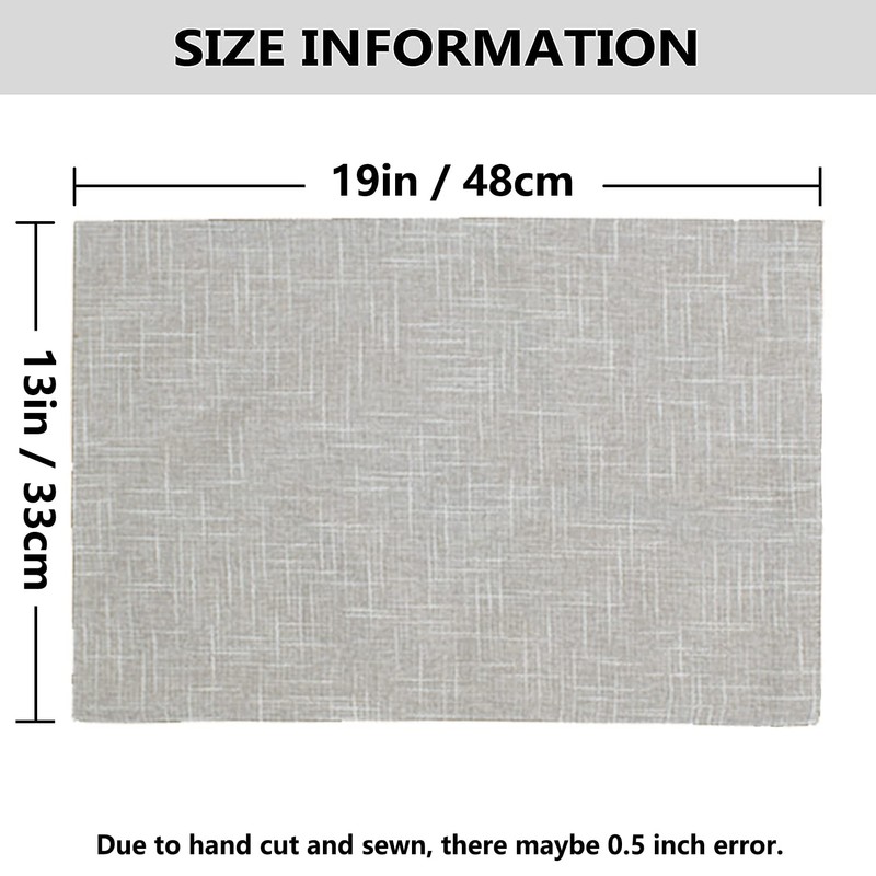 - Size: 13" x 19" (33cm x 48cm),All placemats are cut and sewn by hand and maybe 1 inch error.
