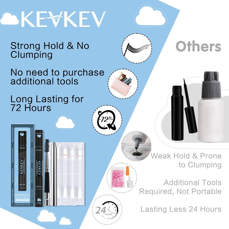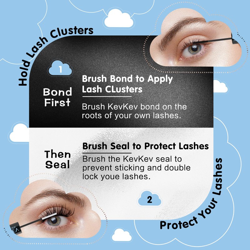 - Strong Hold: KEVKEV lash bond and seal are designed to provide a strong hold for cluster lashes. Use bond and seal both, will prevent any discomfort or sticking of the upper and lower eyelids. With KevKev bond and seal lash glue, you can confidently wear lash clusters for up to 72 hours without worries.