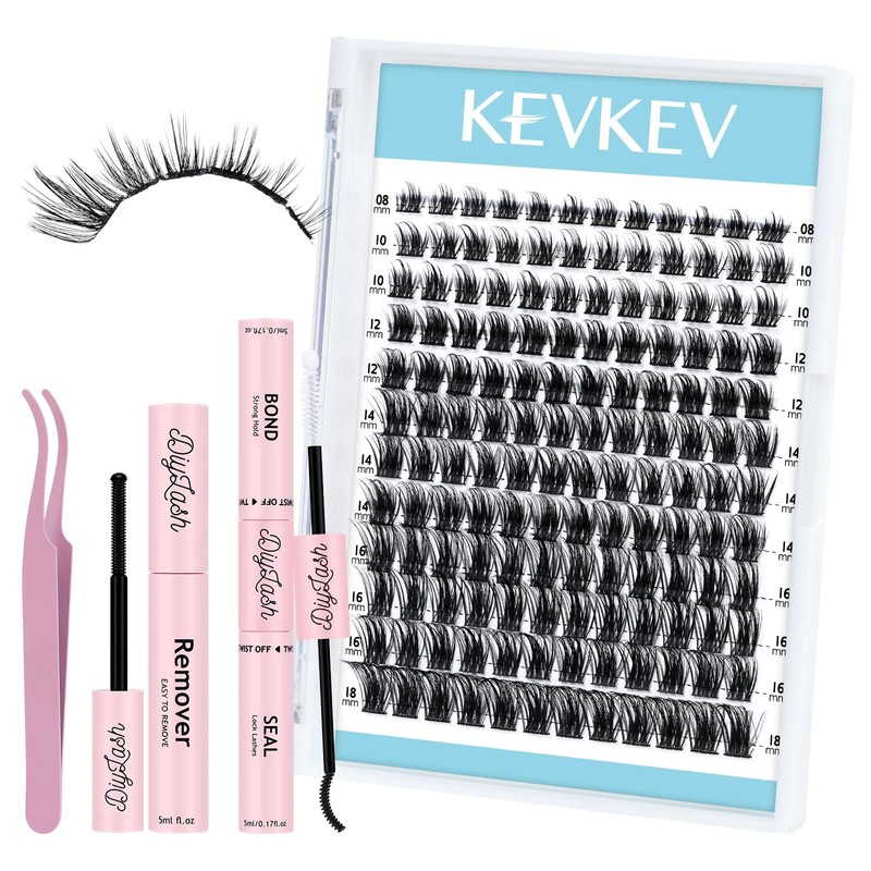 KevKev Lash Clusters Kit 144pcs Eyelash Clusters Cloudy Natural Wispy Lash Clusters Eyelash Extension Kit ith Lash Bond and Seal Remover Beginner Friendly (Cloudy, D-8-18mix)