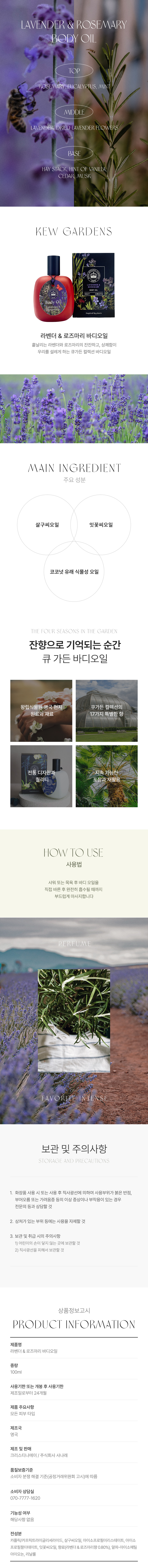 KEW Imported Lavender Rose Marie Body Oil 100ml 1 Gift Fragrance Frenzy Lowing Coord / KEW 영국 직수입 라벤더로즈마리 바디오일 100ml 1개 선물 향수 향기 잔향 코