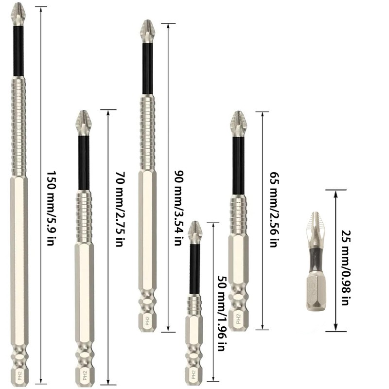 - 6-Pack Value: Includes six PH2 screwdriver bits [Screwdriver length dimension:150 mm/5.9 in,90 mm/3.54 in,70 mm/2.75 in,65 mm/2.56 in,50 mm/1.96 in,25 mm/0.98 in].