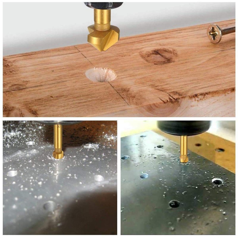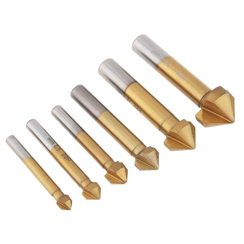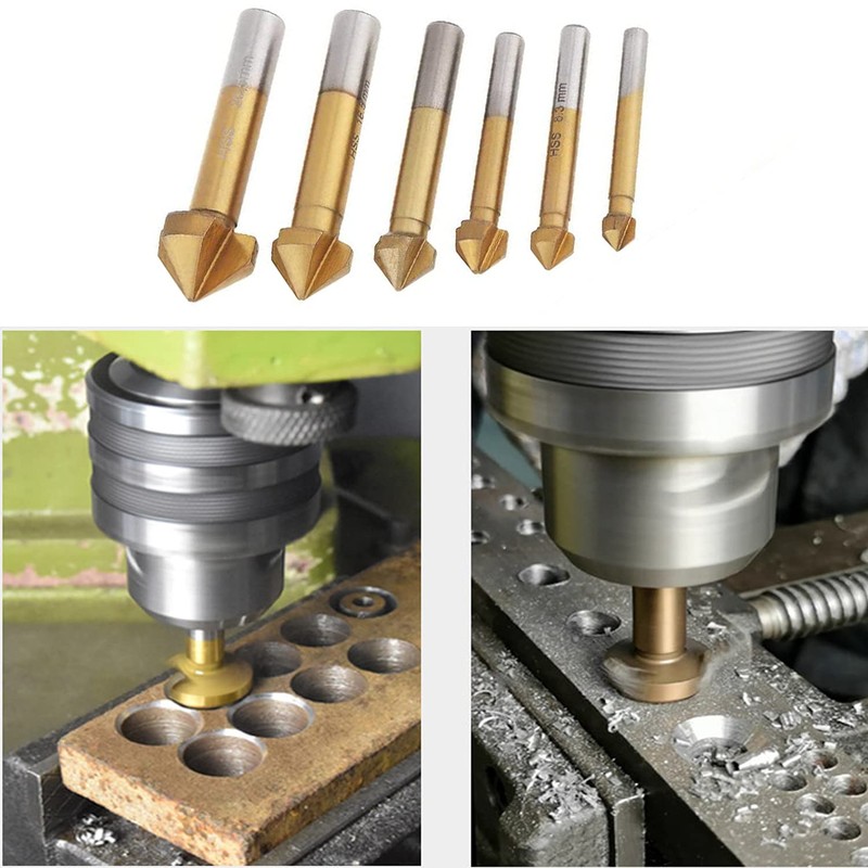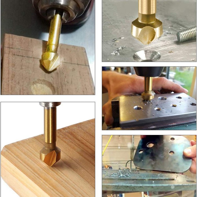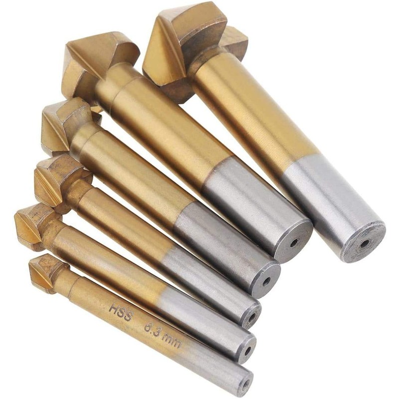 KEWAYO 6pcs Countersink Chamfering Cutter Countersink Drill Bit 3 Blade 90° Deburring Tool Metal Plastic Processing (Head Diameter: 0.25 inch (6.3 mm), 0.3 inch (10.4 mm), 0.6 inch (12.4 mm), 0.65 inch (16.5 mm), 0.8 inch (20.5 mm)