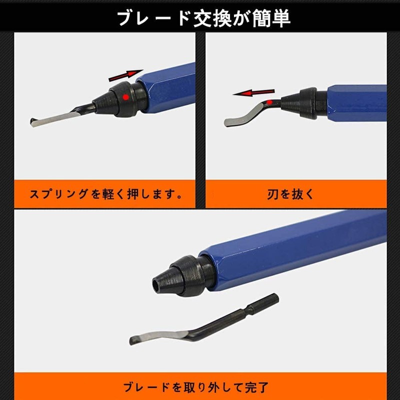 【パッケージ内容】1pcs×(RB1100)バリ取り工具の本体、11pcs×(BS1010)替刃 (に注意:替え刃は10枚、本体に付けるの1枚で合計11枚でした。替え刃は12枚ではありませんので)