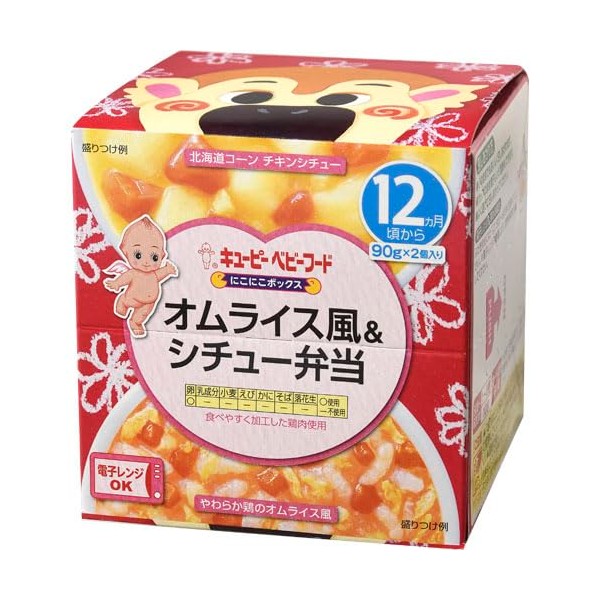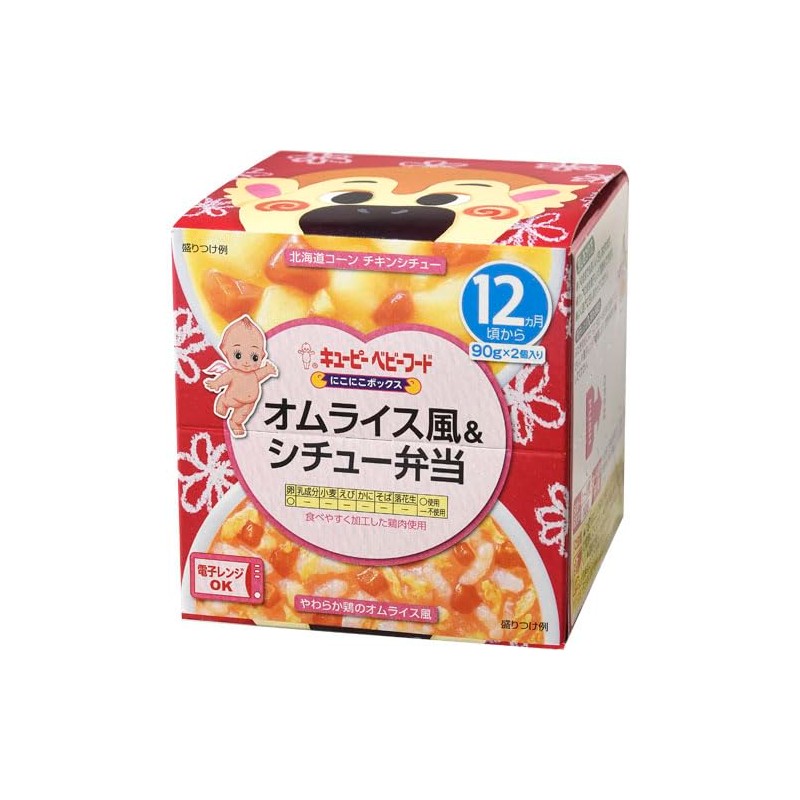 Kewpie Baby Food, Nikoniko Box, Omurice Style & Stew Bento Lunch Box (From Around 12 Months), Cup Container, Baby Food, Age 3.2 oz (90 g) x 2