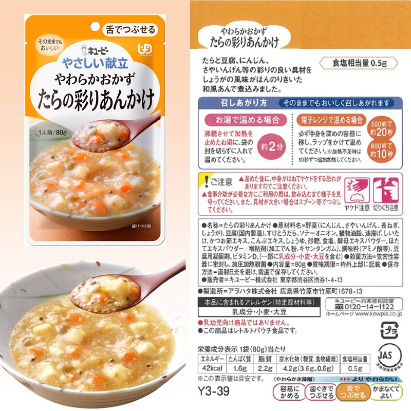 Kewpie Gentle Menu, Soft Side Dish, Tara no Iroi Ankake, 2.8 oz (80 g) x 6 Packs