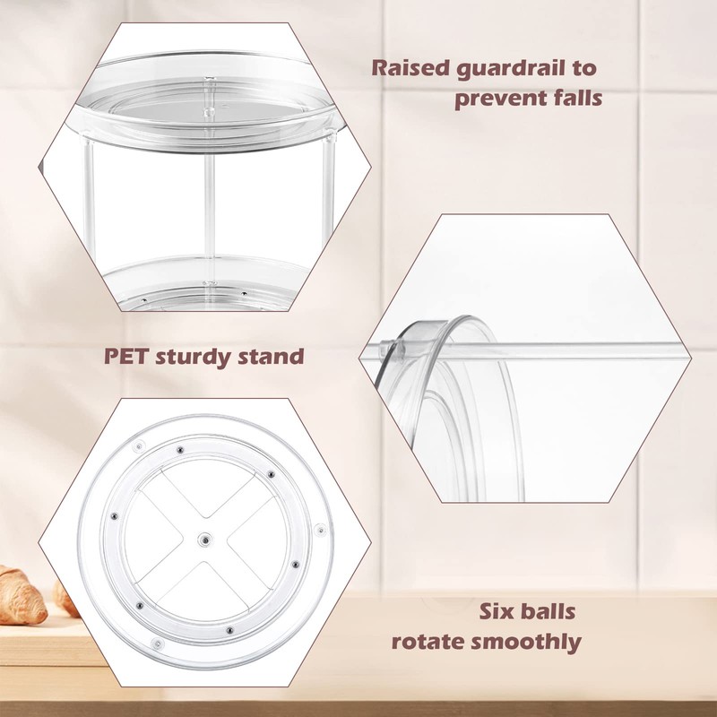 - Organiser turntable uses stainless steel ball bearings to ensure smooth rotation, it can be rotated 360 degrees, so you can access the items you need from any side. Ideal for protecting items in hard-to-reach and high cabinets from losing