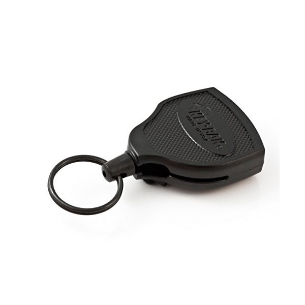KEY-BAK SUPER48 HD 8oz. Locking Retractable Keychain, 48" Stainless Steel Cable, Black Polycarbonate Case, Steel Belt Clip, Oversized Split Ring