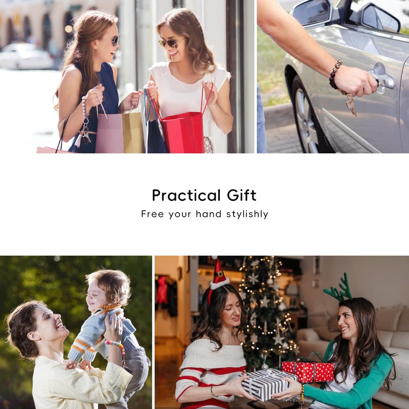 - 【Free Your Hand Stylishly】This fashionable kechain Bracelet keep your essentials on hand,like keys, mask, purse or etc.The wood bead can be continue to receive essential oils, perfumes and other fragrance liquids, leaving fragrance for a long time.Our customer got so many compliments by wearing it.