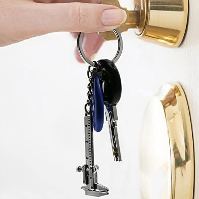 This mini caliper keychain is designed with a lifelike simulation. Although it is small, it can be moved up and down like a real caliper tool, which is very interesting.