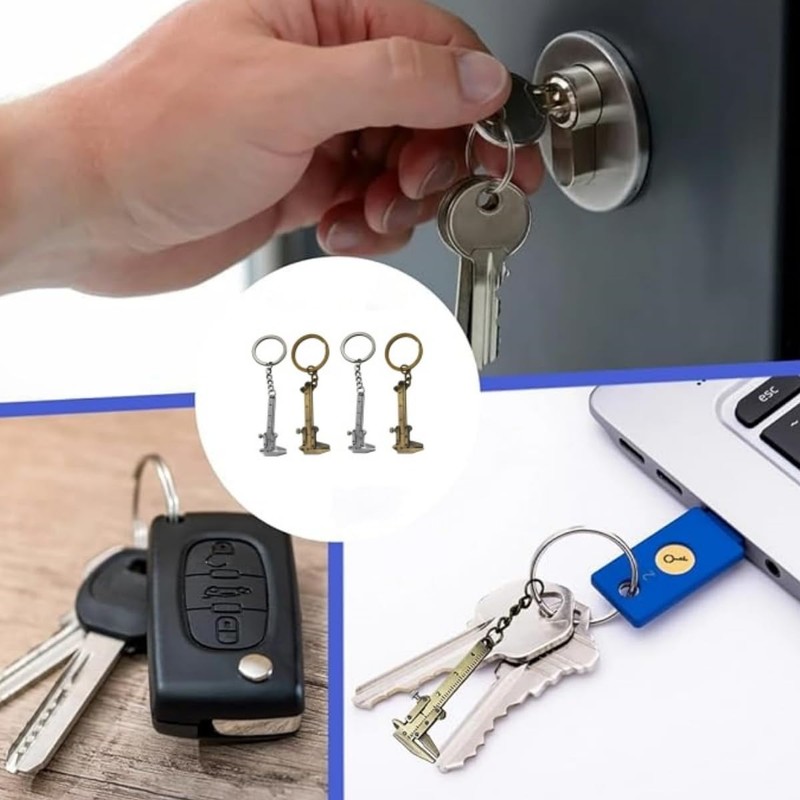 Key Fob, 4 Pieces Mini Caliper, Precision Mini Calliper Keyring, Cute Tools, Movable Keychain, Calliper Keychain, Gift for Men and Women