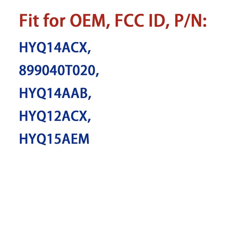 - Fit for OEM, FCC ID, Parts Number(P/N): HYQ14ACX, 899040T020, HYQ14AAB, HYQ12ACX, HYQ15AEM