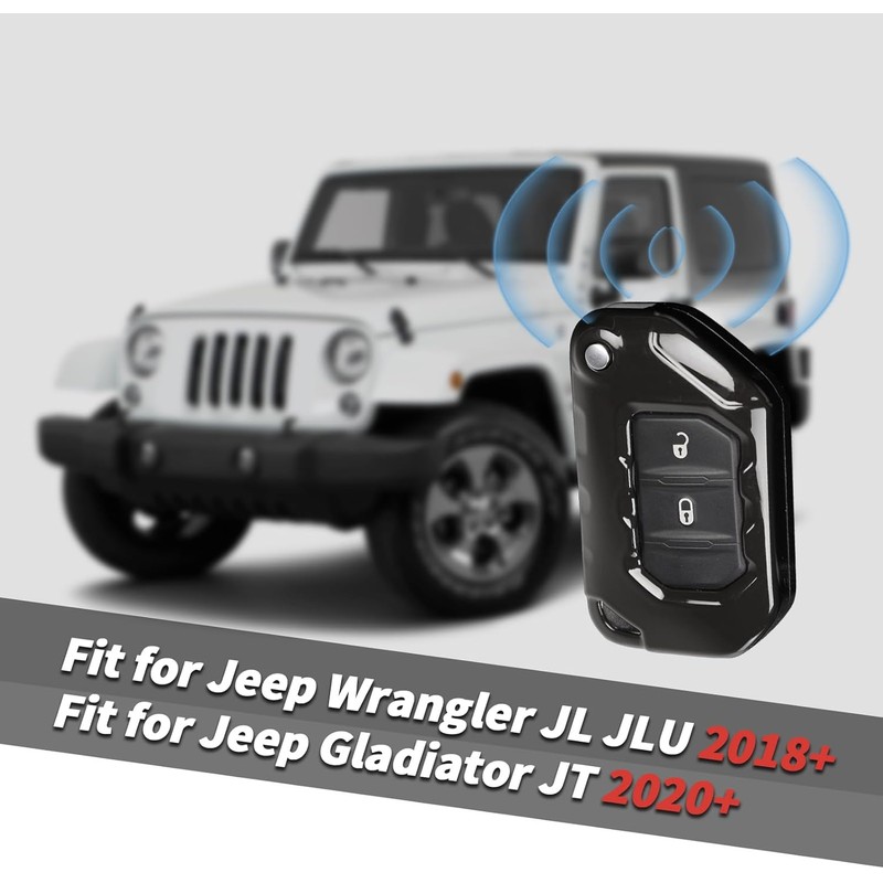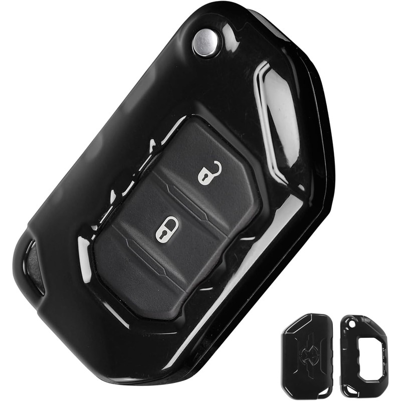 Key Fob Cover Case Protector Fit for Jeep Wrangler JL JLU Gladiator JT 2018-2025 (Black)