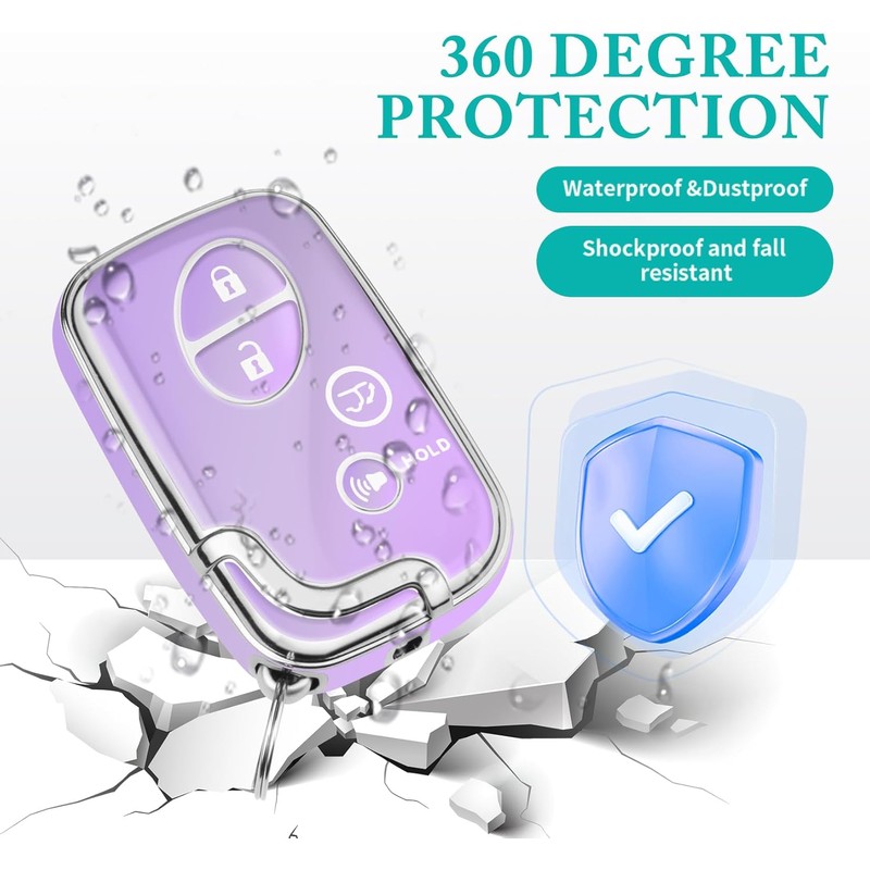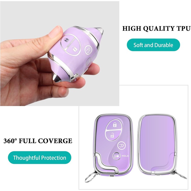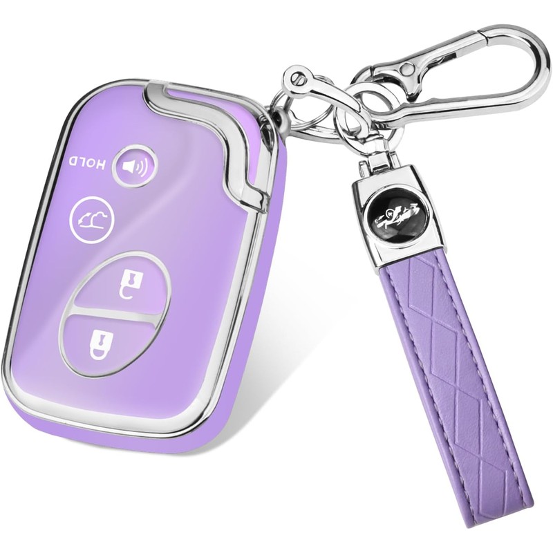 Key Fob Cover for Lexus with Keychain, TPU Key Case Protection Compatible with 2009-2015 Lexus RX350 RX450 GX460 LX570 CT200h ES350 GS300 GS430 GS450h GS460 IS250 IS350 LS460, 4 Button (Silver/Purple)