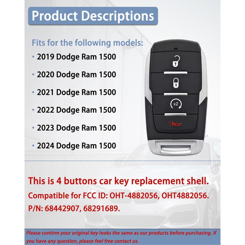 - 【Replacement】The key fob case replacement is compatible with FCC ID: OHT-4882056, OHT4882056, P/N:68442907 68291689