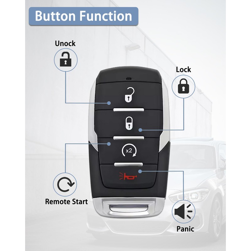 Key Fob Cover Replacement Fits for 2019-2024 Dodge Ram 1500 Keyless Entry Key Fob Case Shell 4 Buttons OHT-4882056