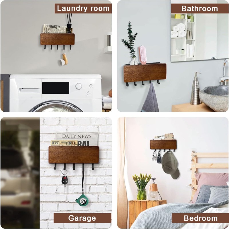 AISHEDYER key and mail holder for wall provides a designated spot for your essentials, making your daily routine more efficient. The hooks for keys offer a secure place to hang your keys, ensuring they are always within reach when you need them. Meanwhile, the mail holder keeps your incoming letters, bills, and important documents neatly organized.