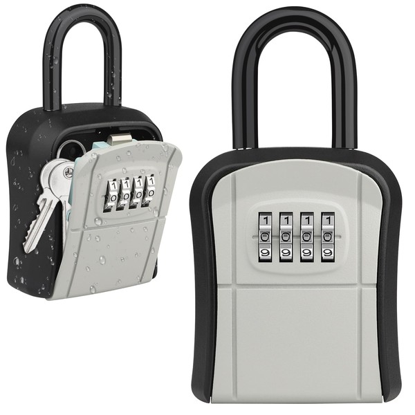 Key Lock Box, [New Version] Diyife Lock Box for House Key, Portable Lockbox for Keys, 4 Digit Combination Key Safe Storage, Waterproof Key Lock Box Wall Mounted for Outdoor Home Garage Office Garden